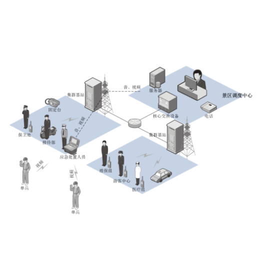 话务量小;统一管理;用户群体:区调度员、景区安保、物业人员。